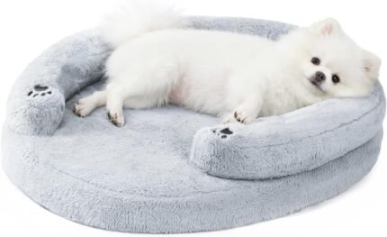 Small Calming Dogs Bed for Small Dogs Anti-Anxiety Machine Washable Fluffy Luxury Anti-Slip Waterproof Mute Base Warming Cozy Soft Pet Puppy Round Bed