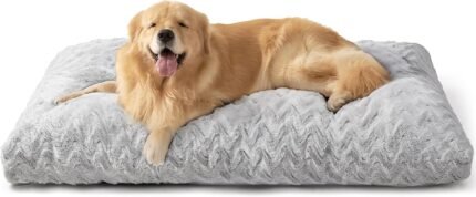 Washable Large Dog Bed for Crate 35×23 Inch, Reversible Kennel Pad for Dogs Weight Up to 45 lbs, Plush and Comfy Pet Sleeping Mat, Grey