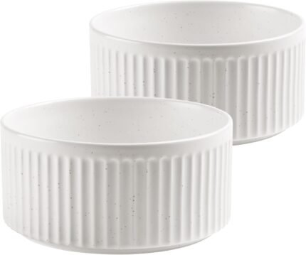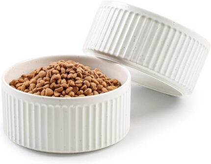 Non-Slip Ceramic Dog Bowls,6″ Dog Food and Water Bowl Set with Silicone Base, 32oz/4cups Weighted Flip-Proof Pet Feeding Bowl for Medium Dogs (Medium,White)