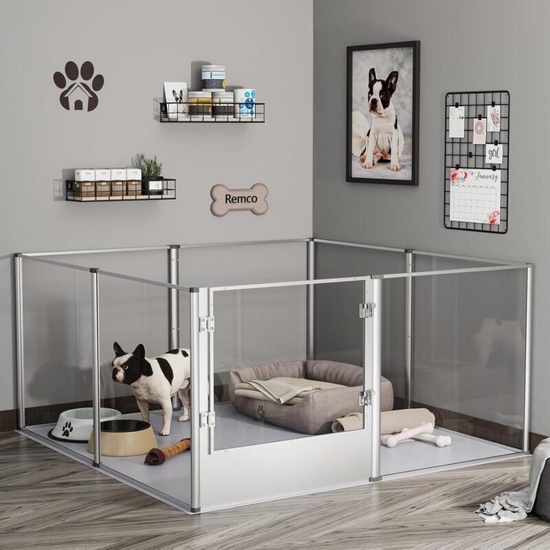 - Modern Acrylic Design: Our Dog Playpen is designed with 360°Ultra-transparent acrylic panels providing crystal-clear visibility for anxious pet parents or training sessions, while seamlessly blending with home decor—no more bulky metal cages ruining your aesthetic.