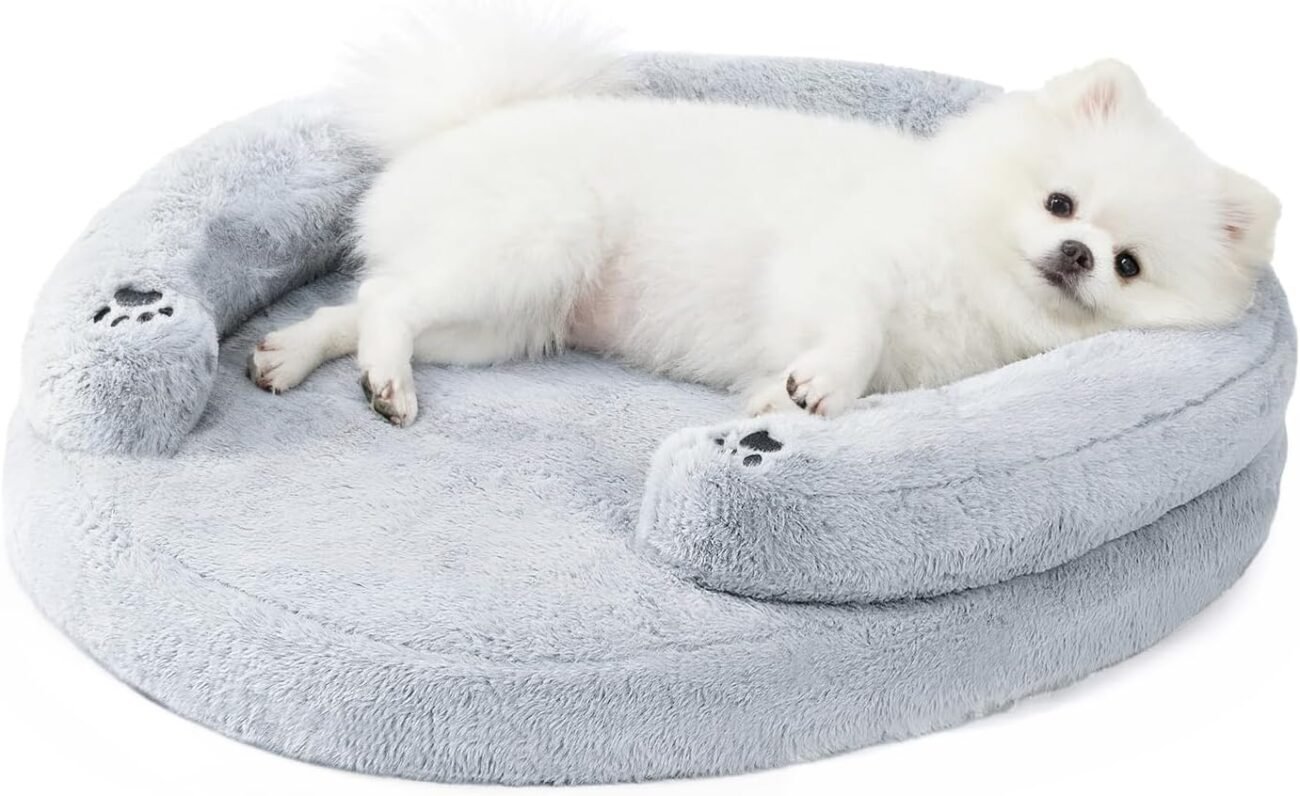 - puppy bed girl Material: Soft short plush fabric, PP cotton inside, durable mattress pad. Give a small pillow(Pink or Leopard pillow, random color) as gift